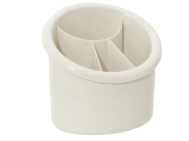 Овална поставка за съхранение на прибори за хранене, с четири секции за сортиращи устройства, с размер 15х16 см., с красив дизайн в цвят бяла роза.