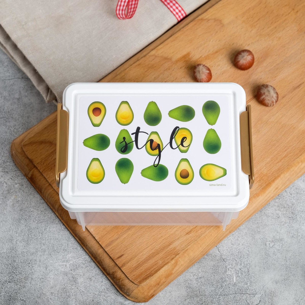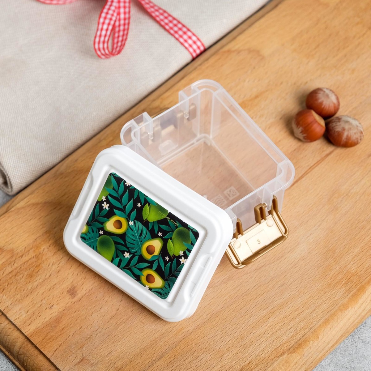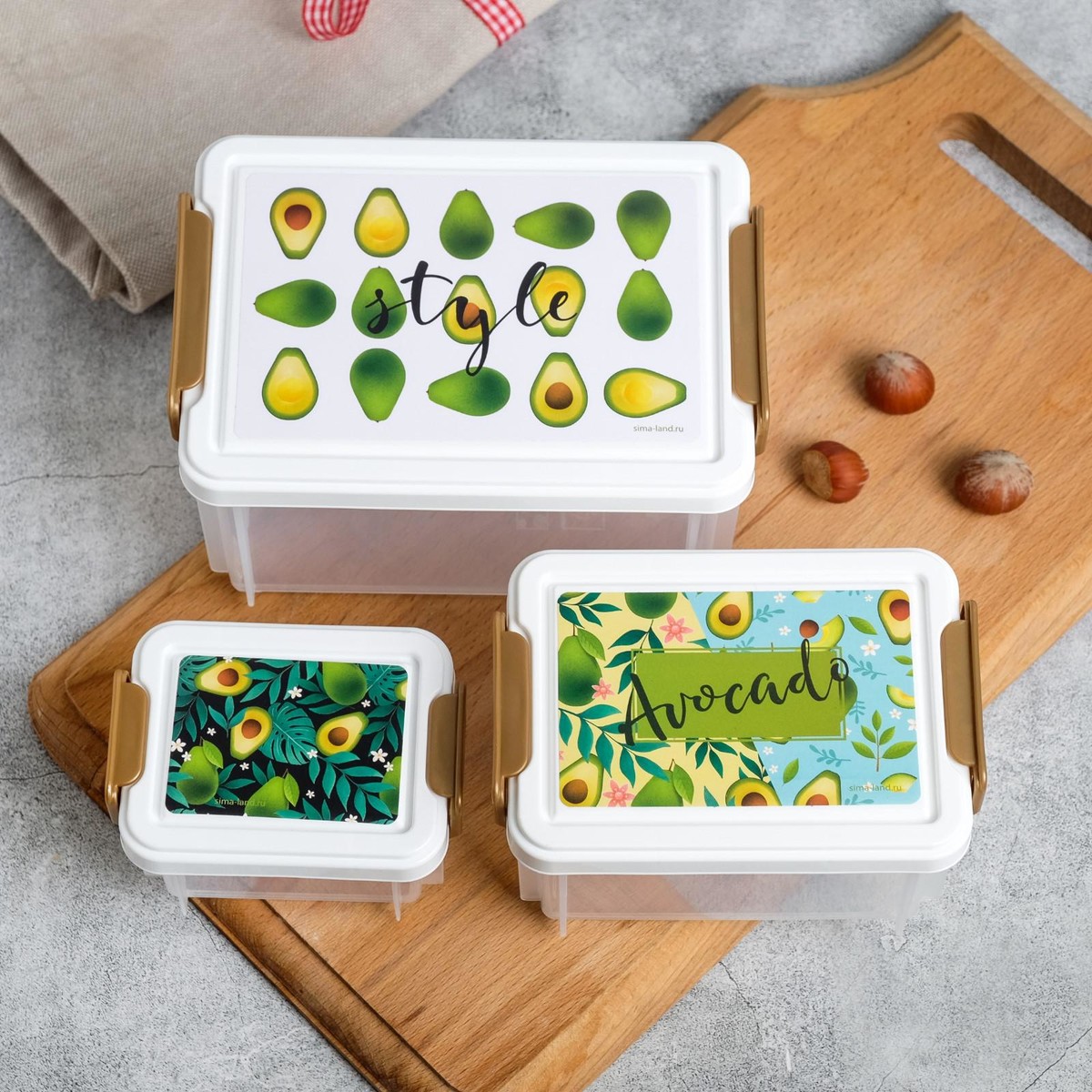 Контейнерите имат капаци със цветен принт на Авокадо.
