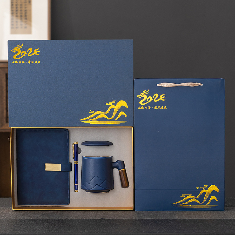 Изберете подаръчния комплект с чаша, химикал и ежедневник, за да създадете запомнящ се момент. Перфектно решение за офиса или дома.