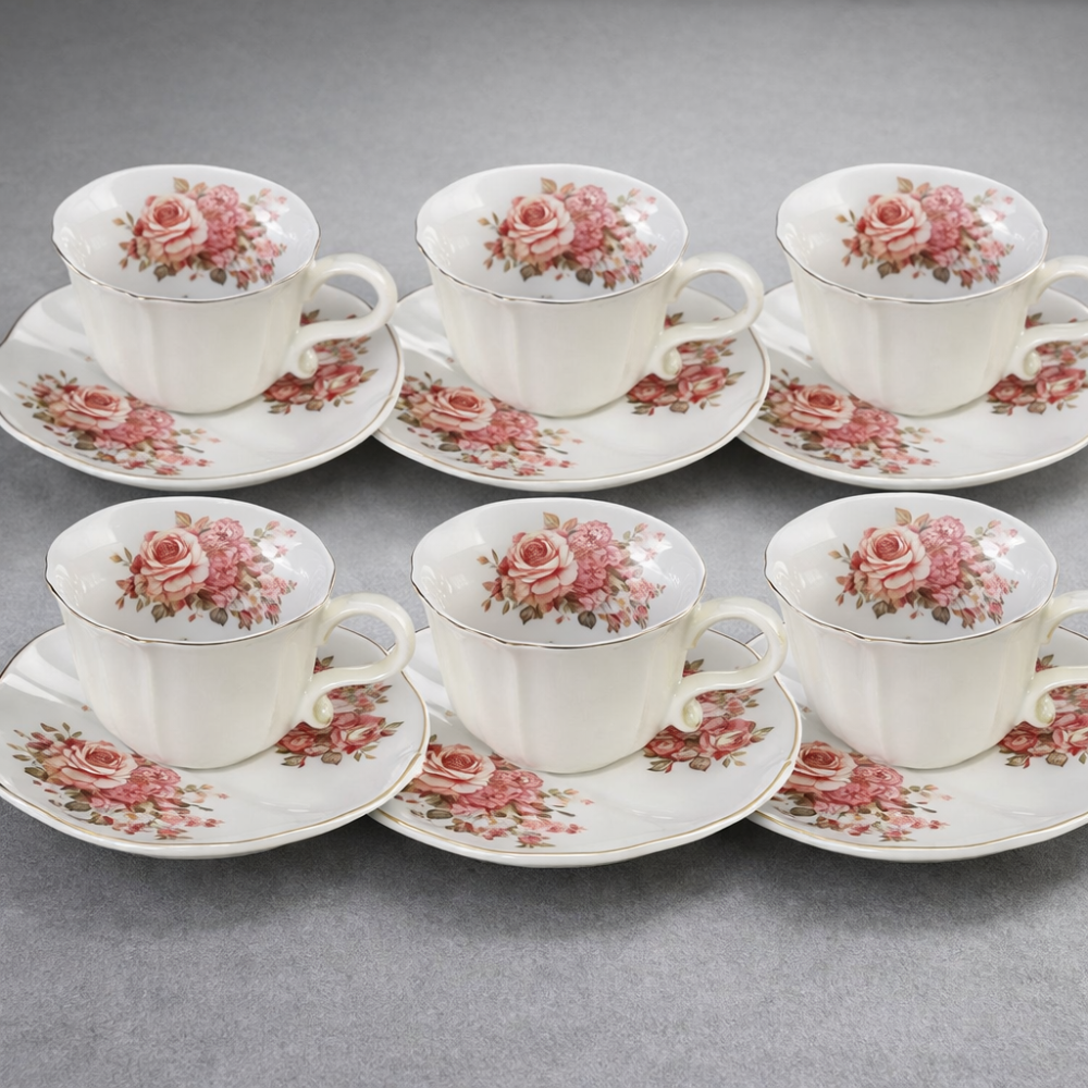 Порцеланов сервиз „Рози“ – 6 чаши с чинийки за кафе или чай
