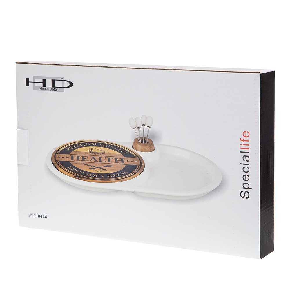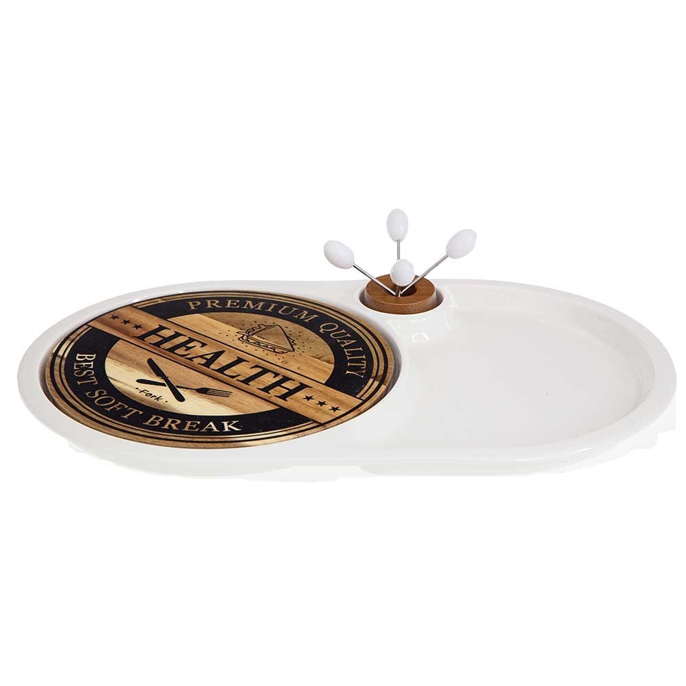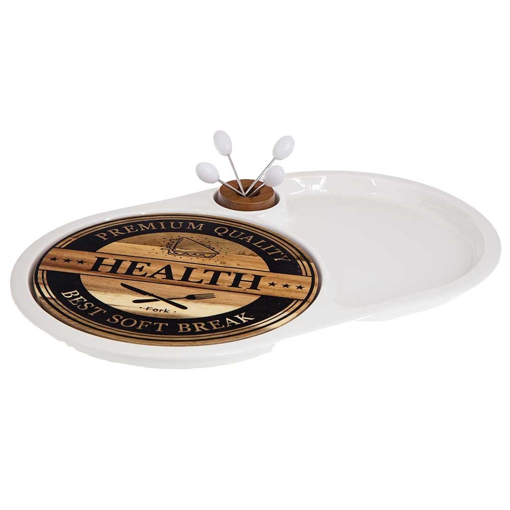 Порцеланово плато за сирена с бамбукова дъска "Health"