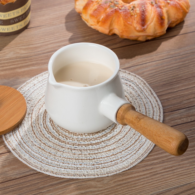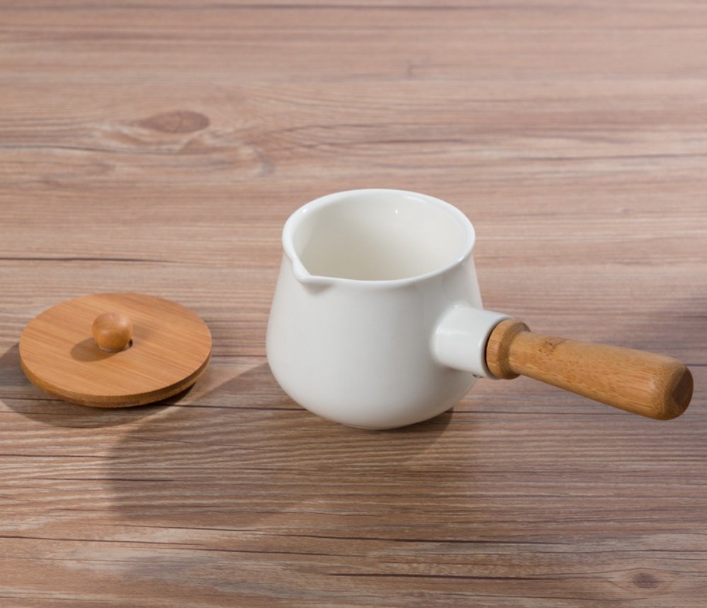Порцелановото Канче с Бамбукова Дръжка и Капаче е перфектният избор за всеки, който цени качествени материали и стил във всеки детайл. Насладете се на вашето мляко с този изтънчен аксесоар.