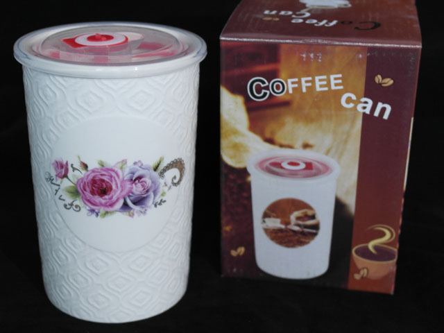 Бяла порцеланова чаша с вакуум капак, с размер Н14 х ф-10 см., с красив релефен дизайн и щампа на цветя.