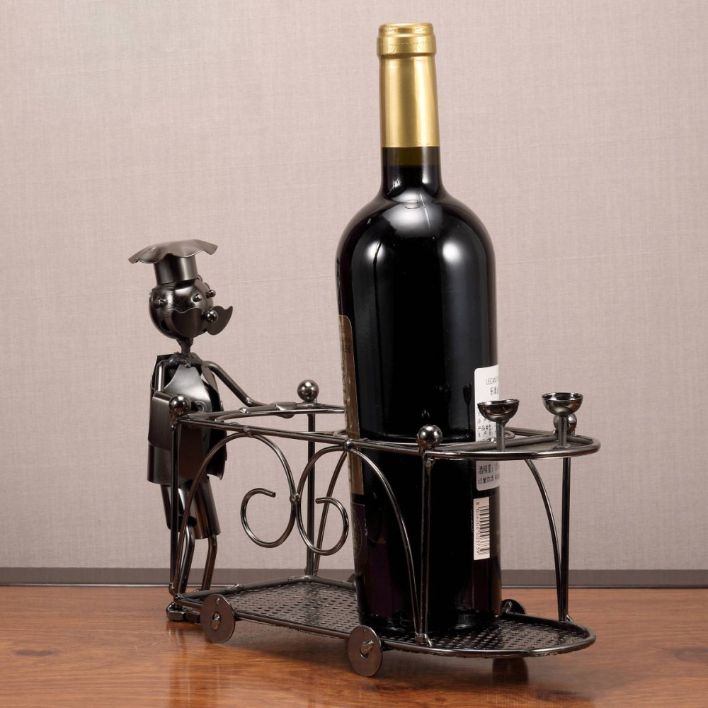 Добавете изискан детайл към интериора си с тази елегантна метална поставка за бутилка вино и чаша. Идеална както за домашна употреба, така и като оригинален подарък за ценители на виното.