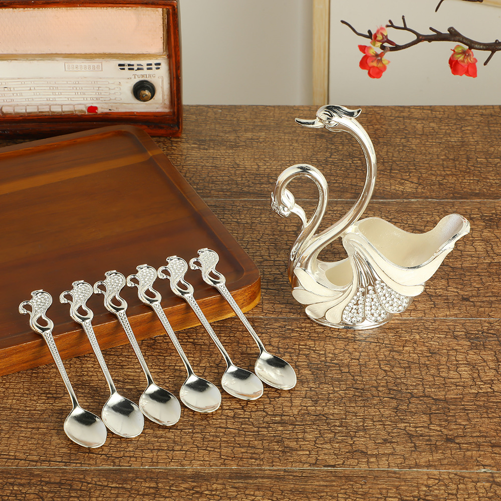Поставка за десертни лъжички "Два Лебеда" - Бяла