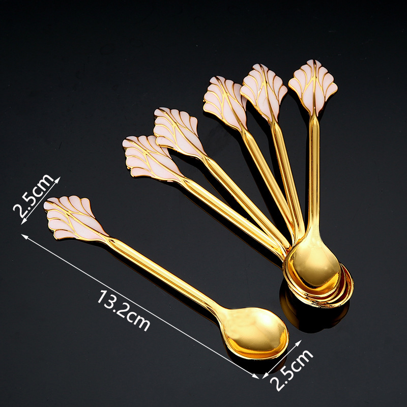 Тя съдържа 6 лъжички в златисто и розово с размери 13,2 х 2,5 см.