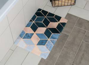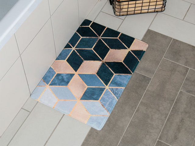 Цветна постелка с антиплъзгаща се основа на ромбоиди. Подходяща за банята на Вашия дом.