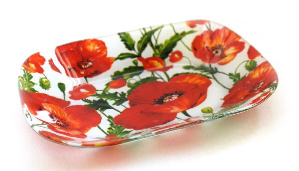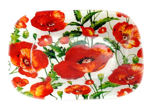Правоъгълна стъклена купа "Червени макове" - цена за 6 бр