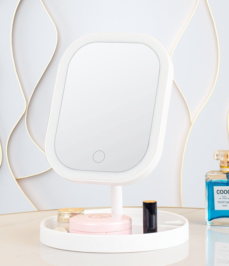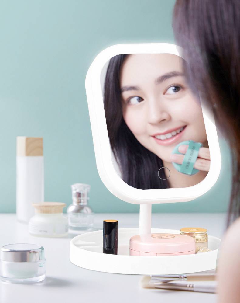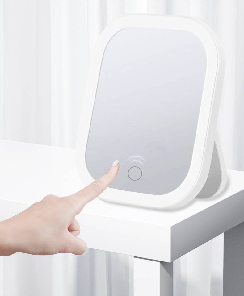 Огледалото има LED светлини с различни сили на осветеност, които се управляват от Touch бутон.