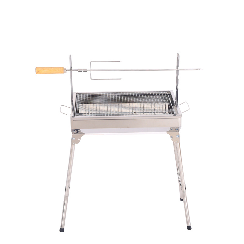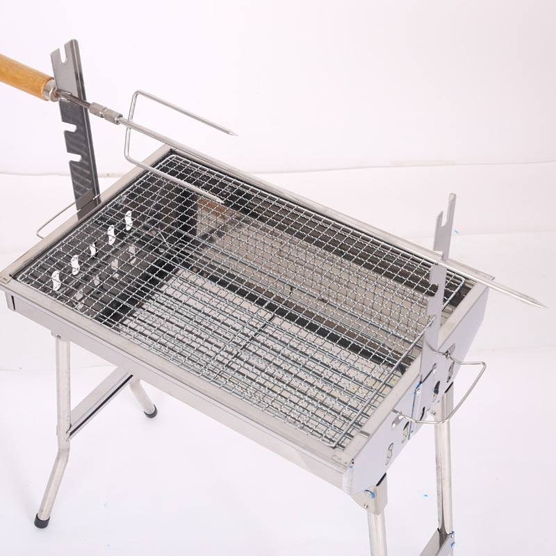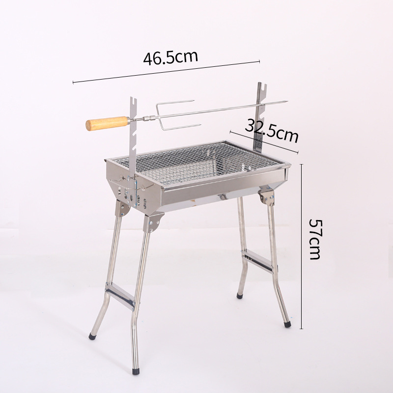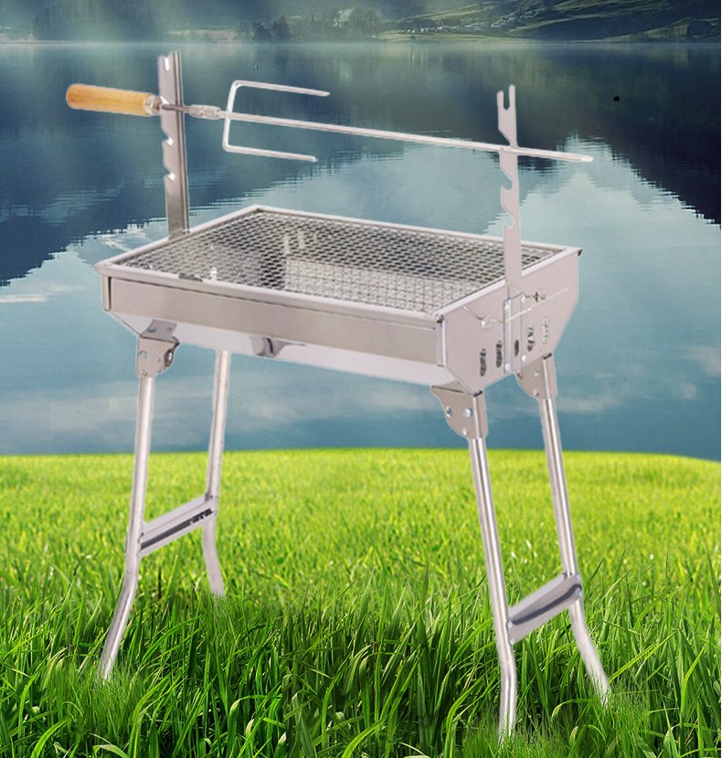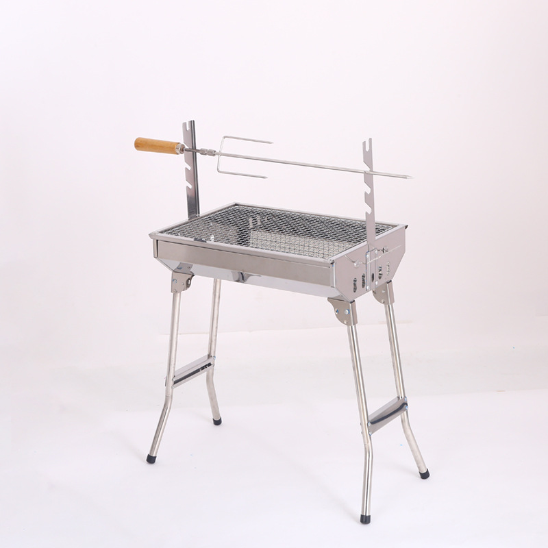 Преносимо барбекю от неръждаема стомана със стойка за шиш + шиш