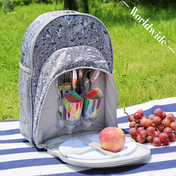 Комплект за пикник за двама, разположен в удобна раница с хладилно отделение.