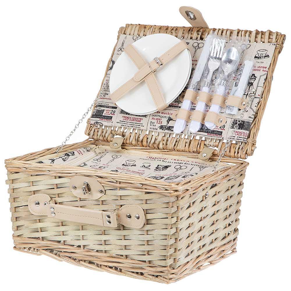 Ратанова кошница за пикник с прибори за двама - бежова