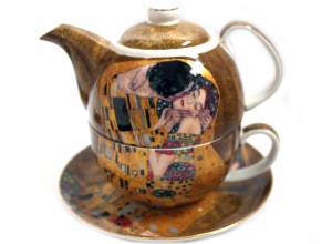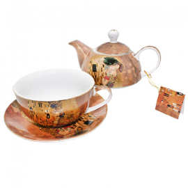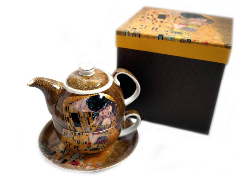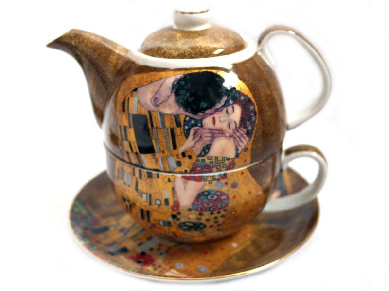 Сервизът е изработен от порцелан по картината на Густав Климт "Целувката".