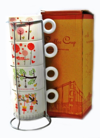 Завладяващият комплект чаши от 4 броя с метална поставка е идеалният избор за вашата домашна колекция.