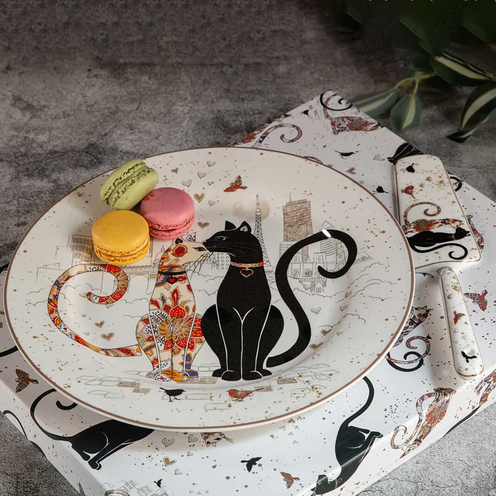 Сервиз за торта "Котките", Ф-27 см., с лопатка за сервиране
