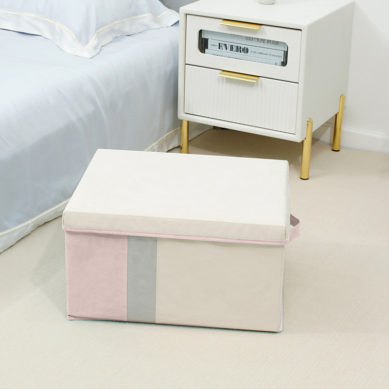 Изработена от комбинация от текстил и картон, тази кутия е в нежни розов и бежов цветове, което ѝ придава мек и приветлив вид. С размери 40 х 26 х 30 см, тя предлага обширно пространство за съхранение на дрехи, играчки и други домакински предмети, помагайки ви да поддържате ред и чистота във вашия дом.