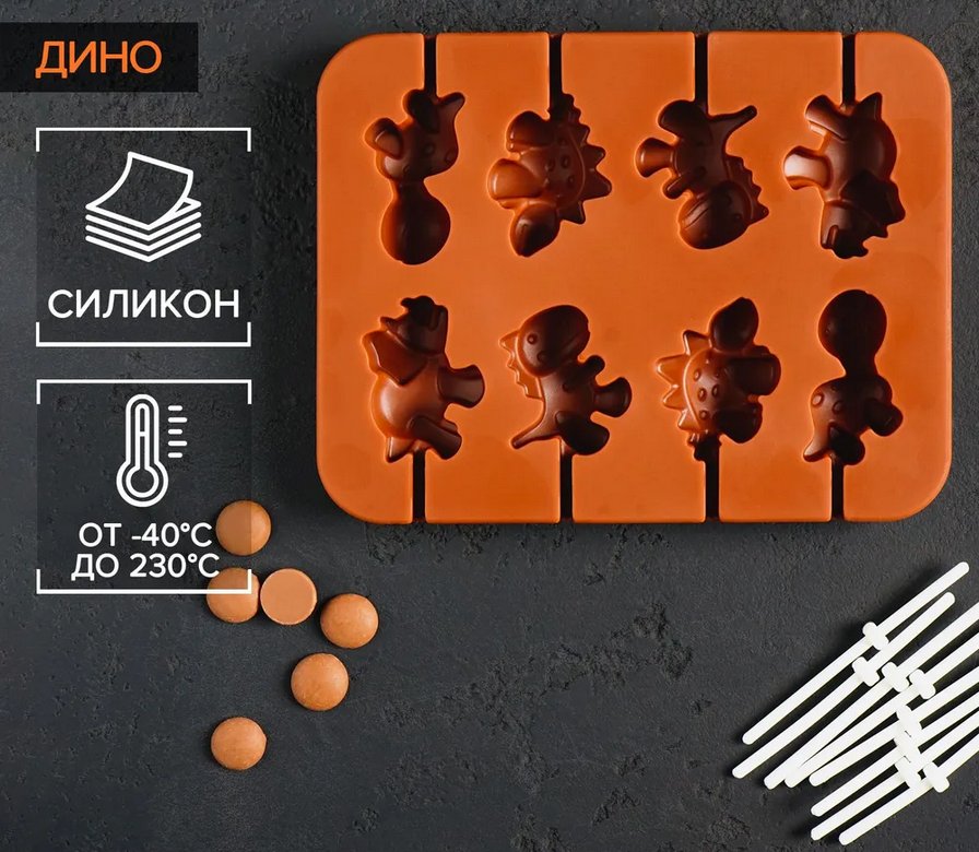 Тази форма добавя забавление и креативност във вашата кухня. С нея можете лесно да приготвите близалки във формата на любимите динозаври и да внесете радост във всяко детско събитие.