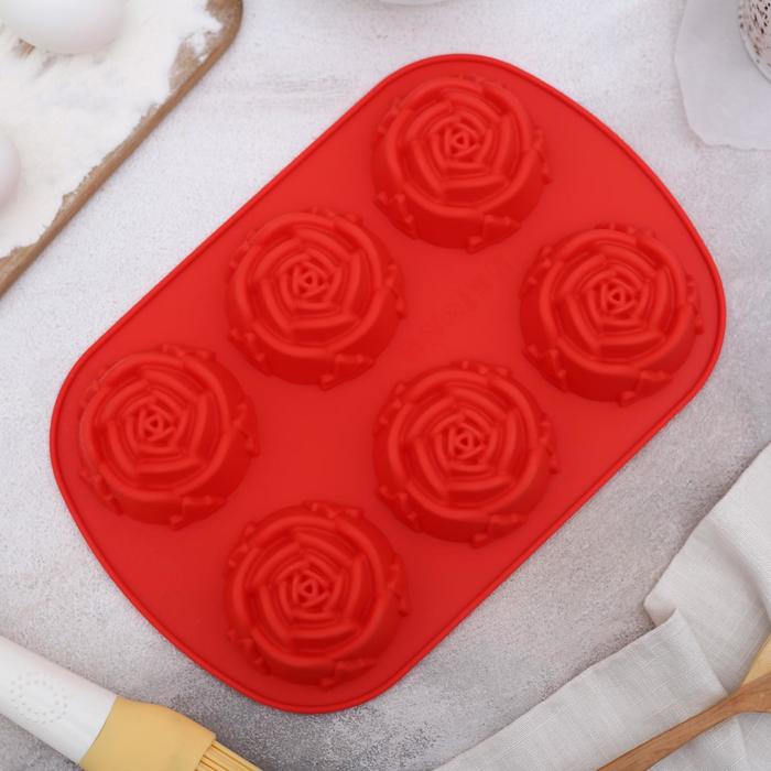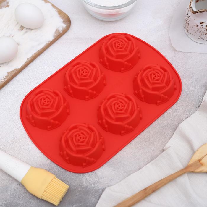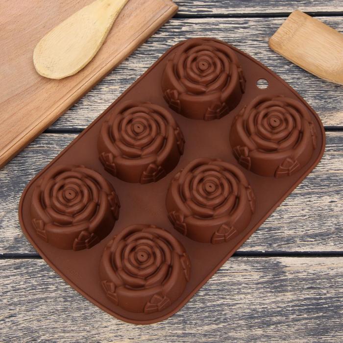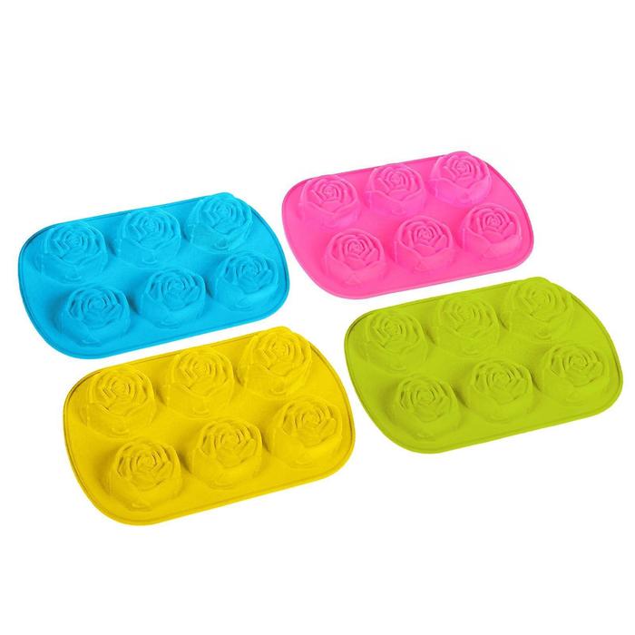 Силиконова форма за печене "Розички" с тегло 112 г. и с размер 16х24х4 см., с която можете да приготвяте вкусни печени изделия. Има шест отделения с диаметър 5,8 см.