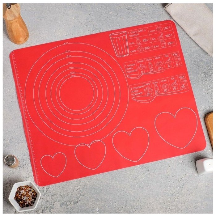 Силиконовата подложка "Готвим с любов" е практична и лесна за почистване. Нейните различни функции я правят необходим аксесоар за всеки готвач. С тази подложка ще можете да приготвите вкусни ястия с лекота и прецизност.