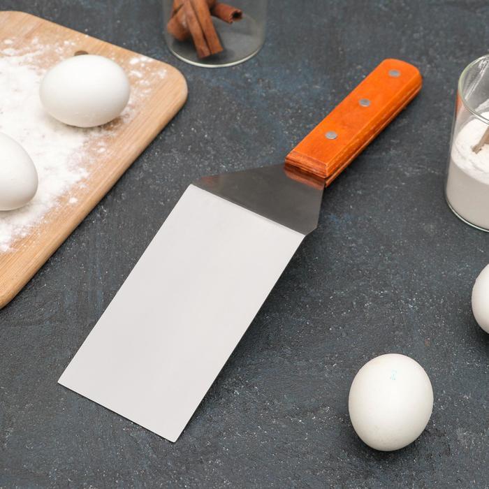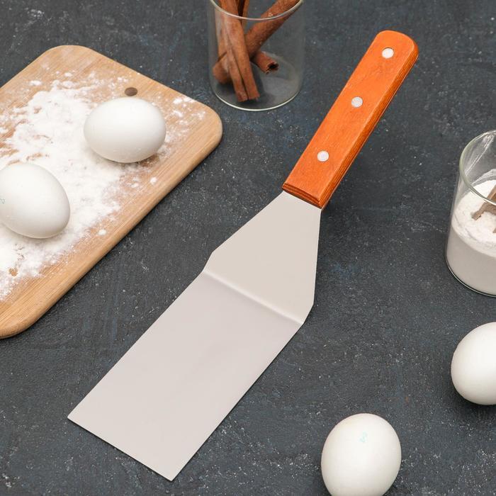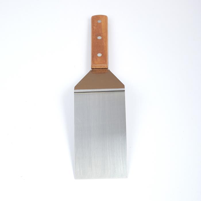 Шпатулата е изработена от неръждаема стомана и дърво.