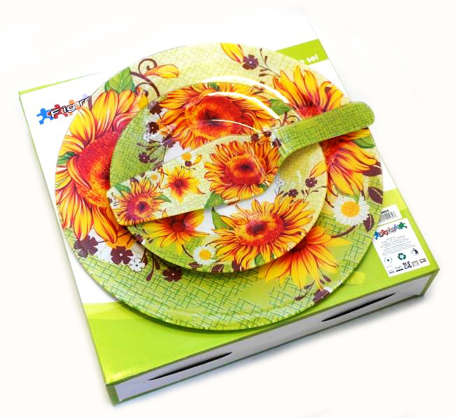 Стъклен сервиз за торта от 8 части "Слънчогледи"