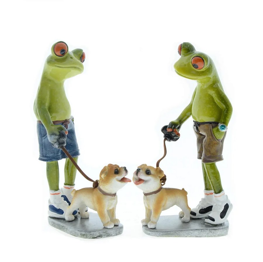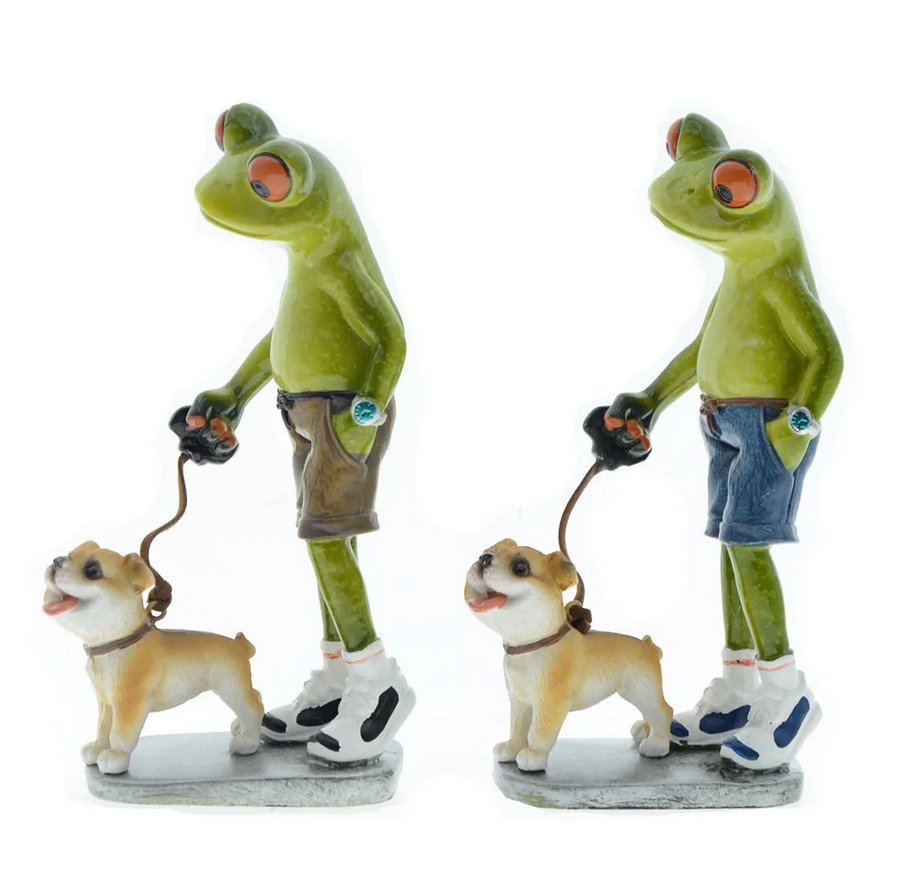 Идеална за добавяне на усмивка и оригиналност към вашия дом или офис, Статуетката "Жаба с Куче" е перфектният подарък за любителите на нестандартните и вълнуващи декоративни елементи.