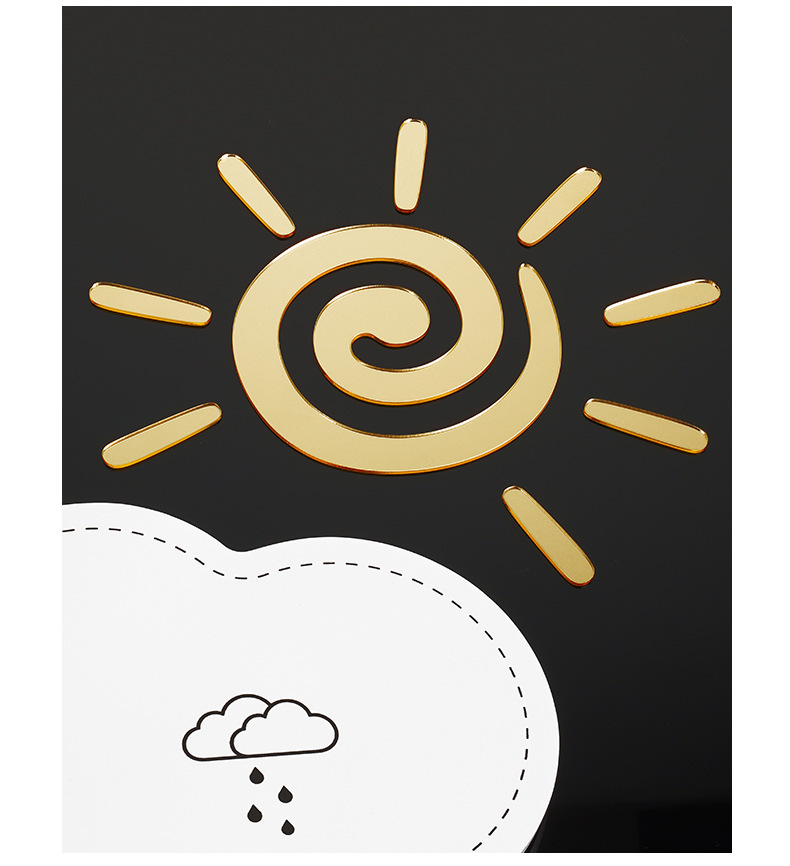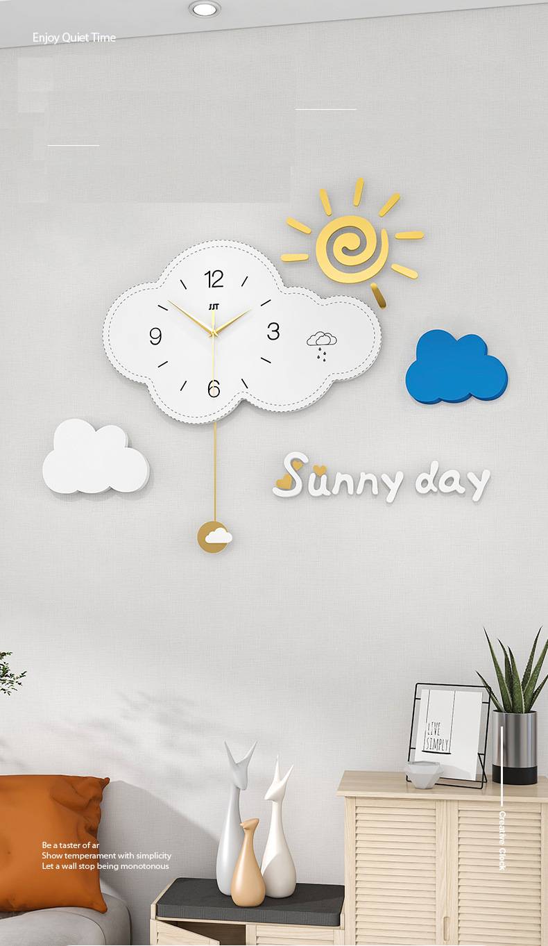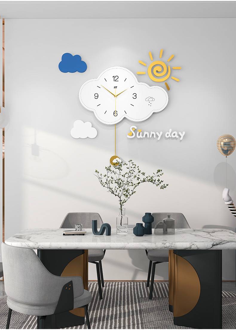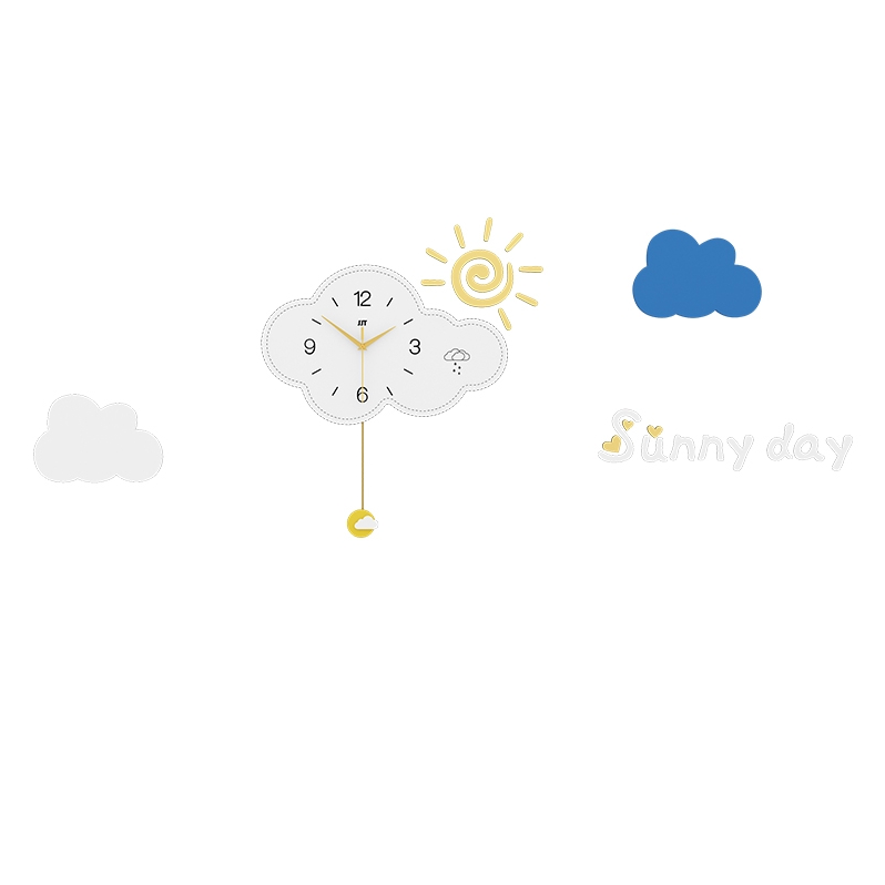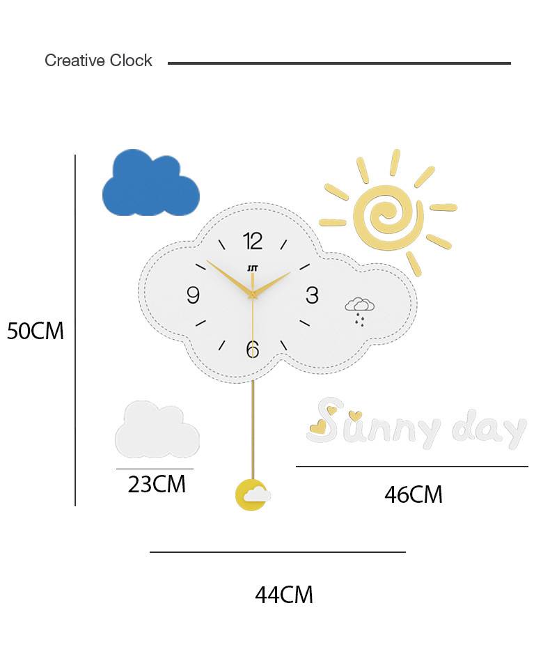 Пренесете радостта на слънчевия ден във вашия дом със стенния часовник "Sunny Day". Този дизайнерски часовник, декориран с игриви облаци, светло слънце и въздушния надпис "Sunny Day", предоставя не само практичност, но и стилен акцент за вашия интериор.