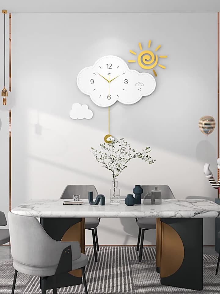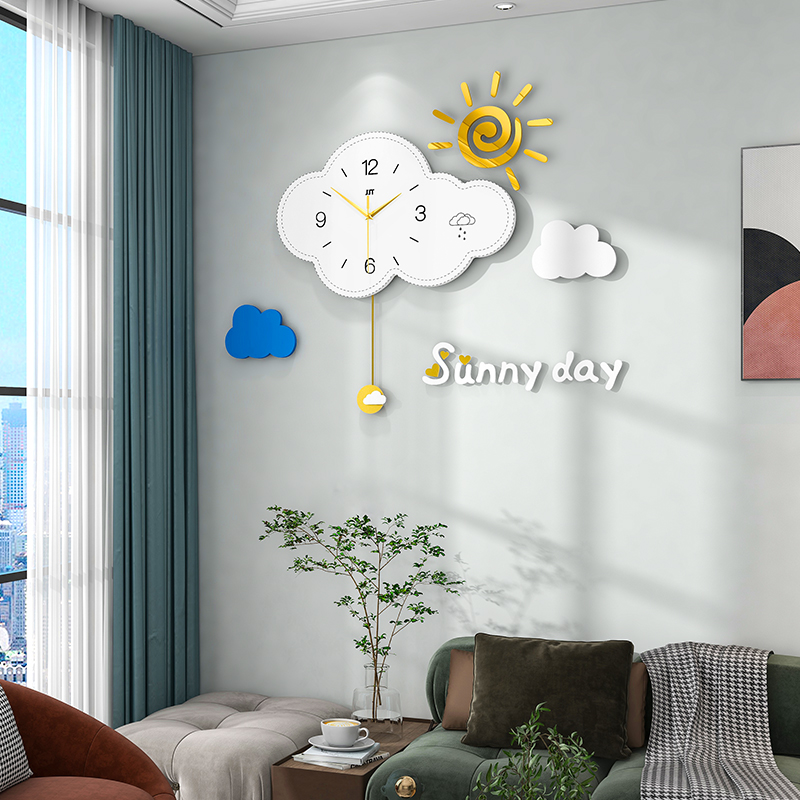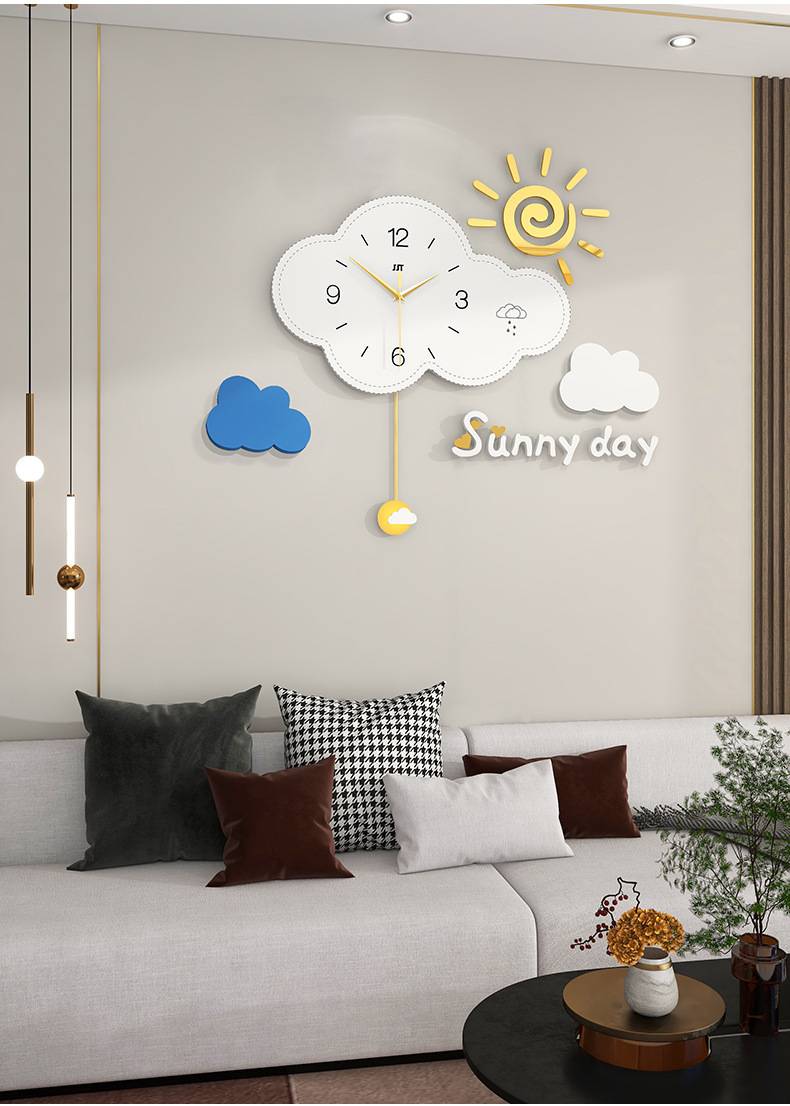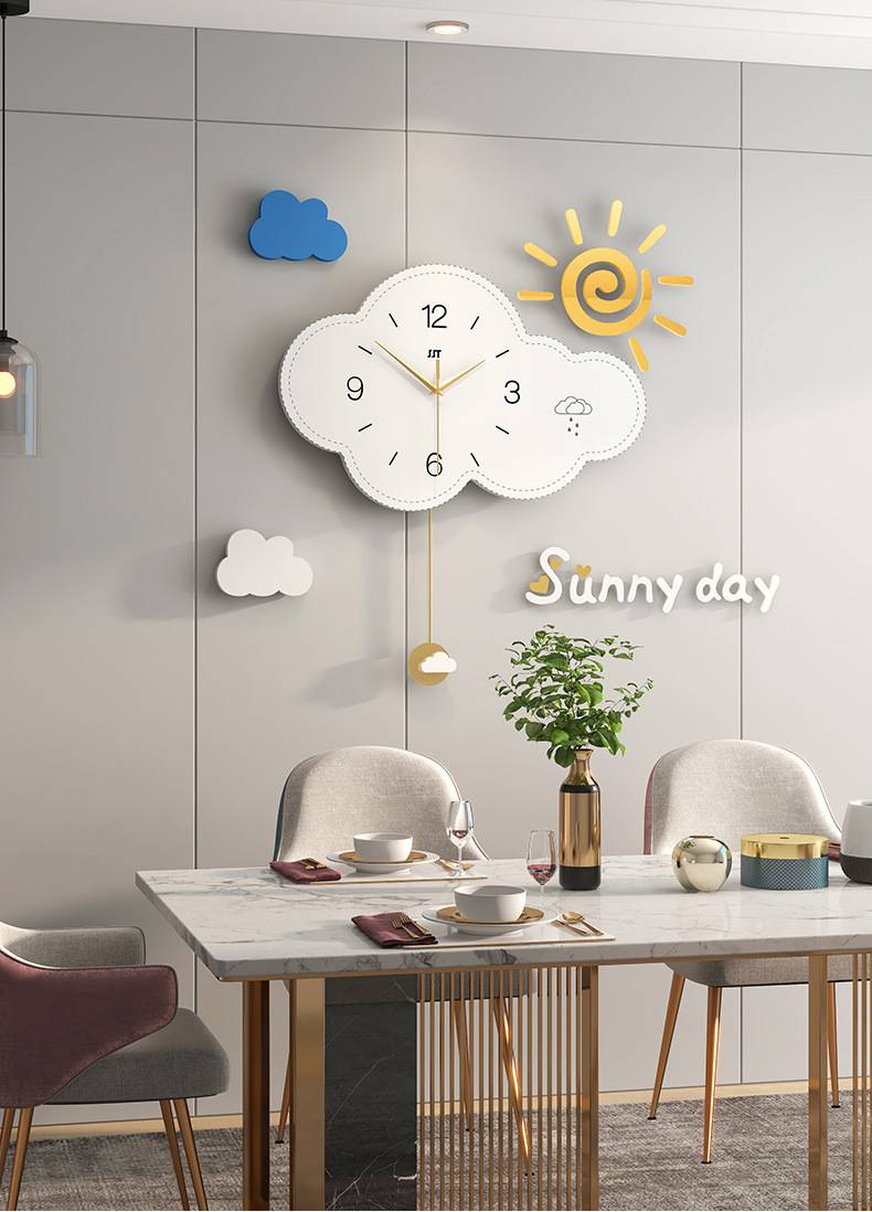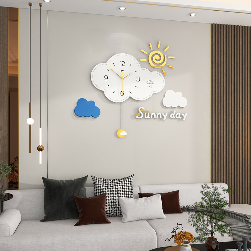 Пренесете радостта на слънчевия ден във вашия дом със стенния часовник "Sunny Day". Този дизайнерски часовник, декориран с игриви облаци, светло слънце и въздушния надпис "Sunny Day", предоставя не само практичност, но и стилен акцент за вашия интериор.