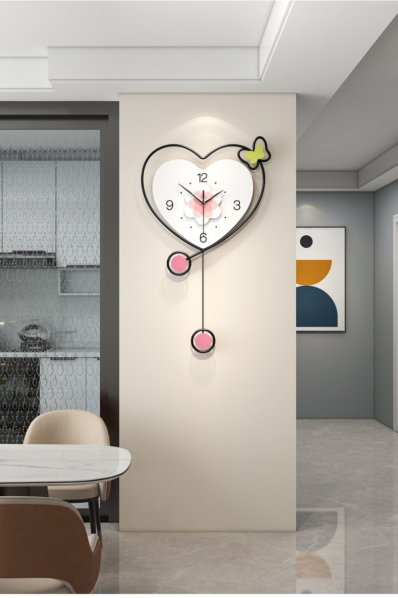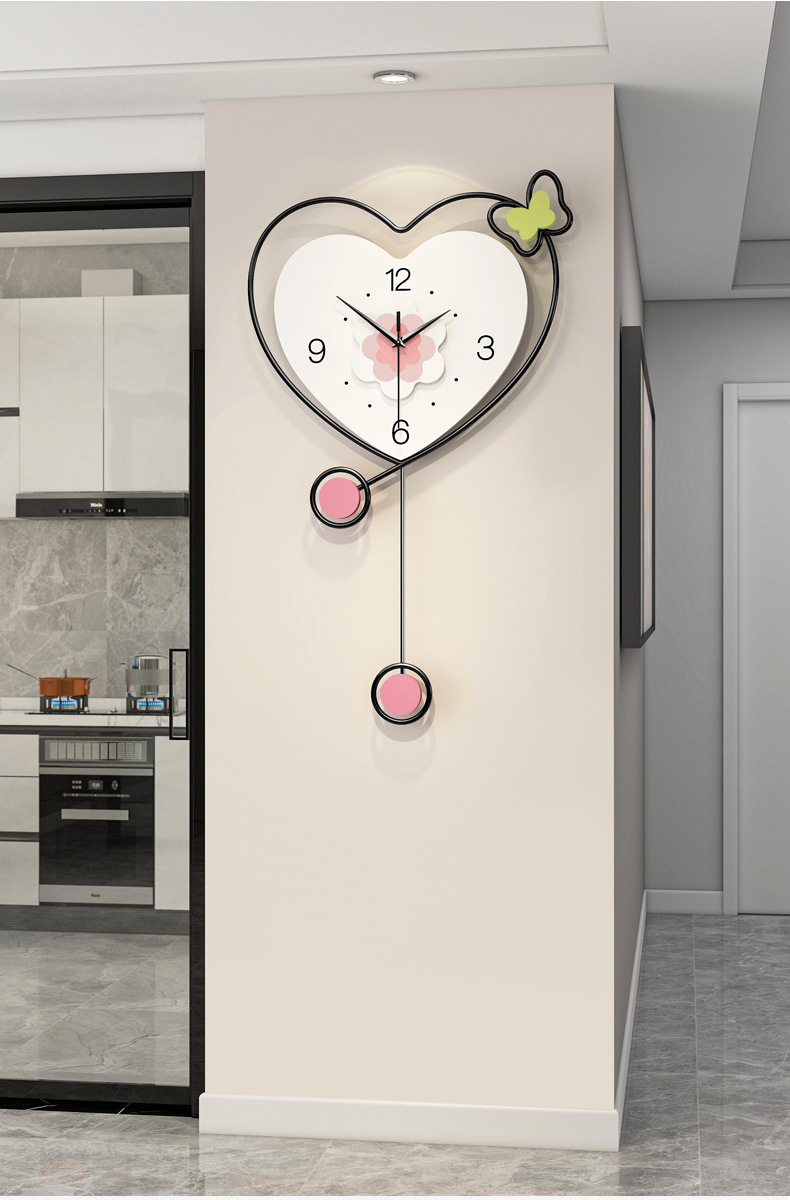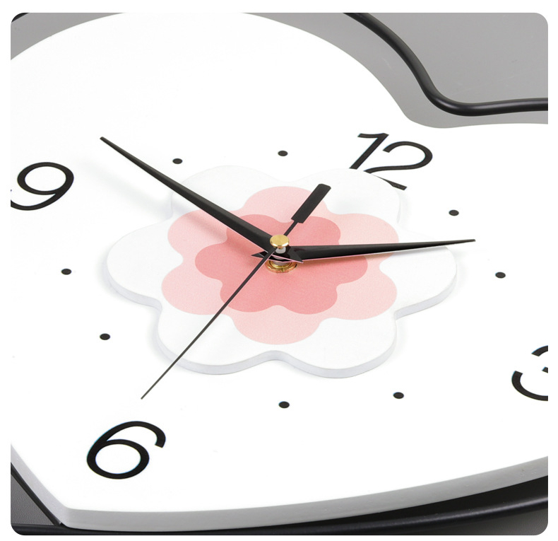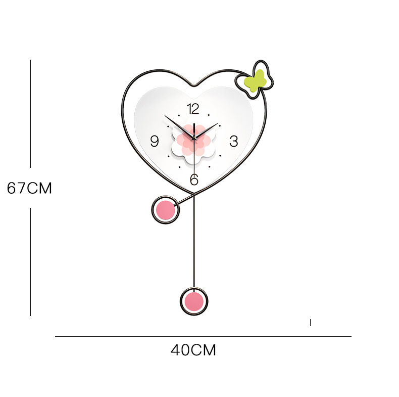 Часовникът е изработен от метал във формата на сърце в бяло и розово с черен елегантен контур.