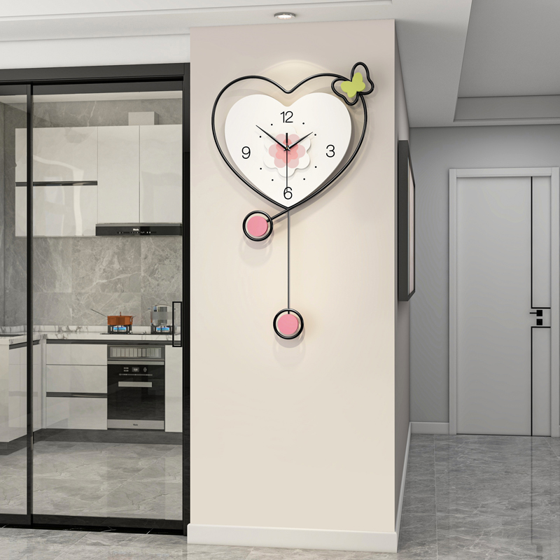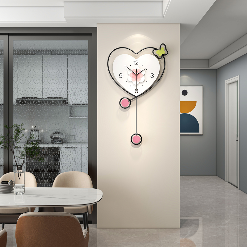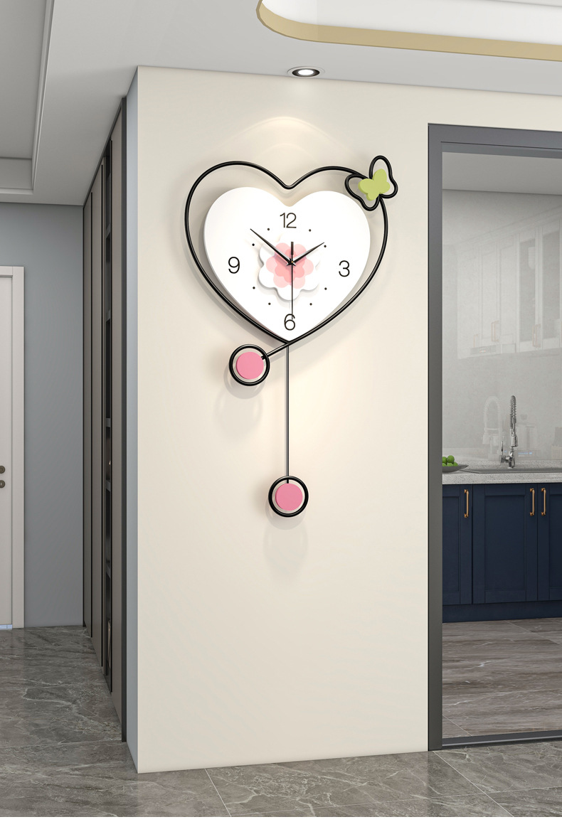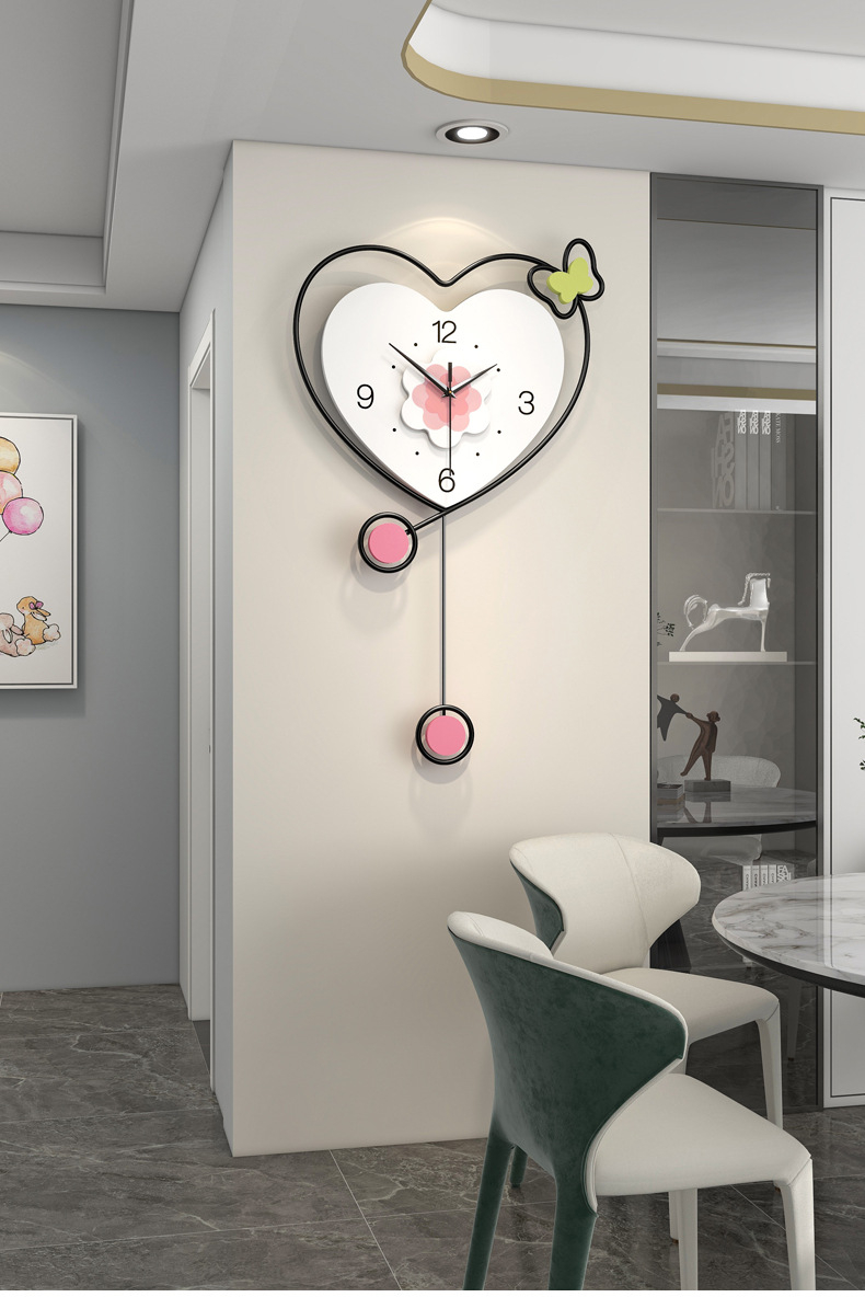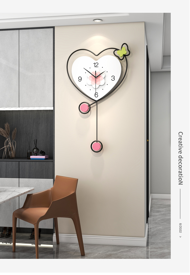 Часовникът е изработен от метал във формата на сърце в бяло и розово с черен елегантен контур.