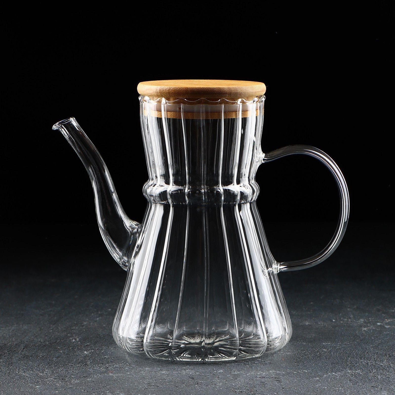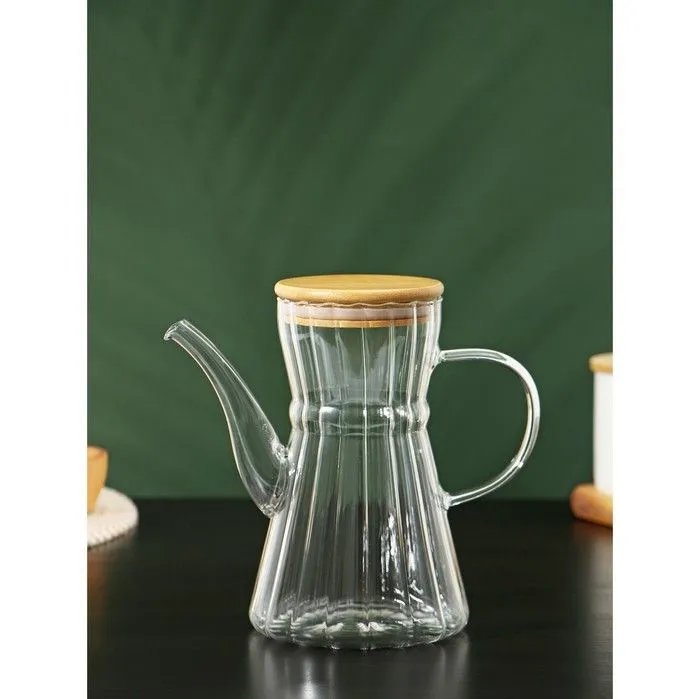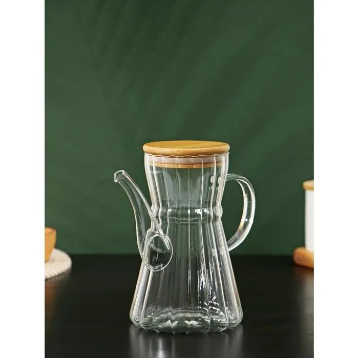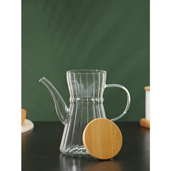 Чайникът е изработен от топлоустойчиво стъкло и бамбуков капак.