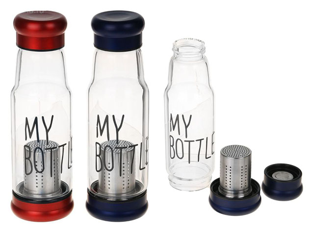 Оригинална преносима бутилка за вода и за чай MY BOTTLE с размери H22x5.5 cм., изработена от стъкло, с неопренов калъф, с вместимост 550 мл.