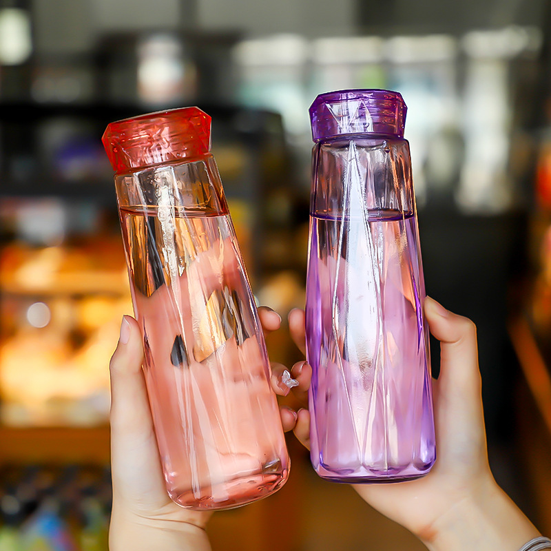 Стъклена бутилка за вода "Diamond" 400 мл. - Синьо-зелена