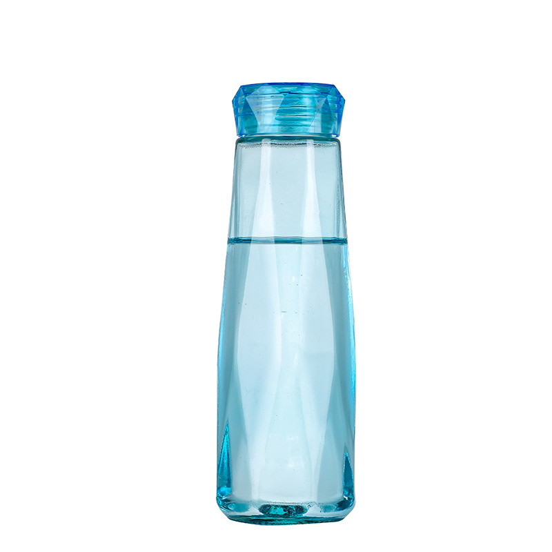 Стъклена бутилка за вода "Diamond" 400 мл. - Синя