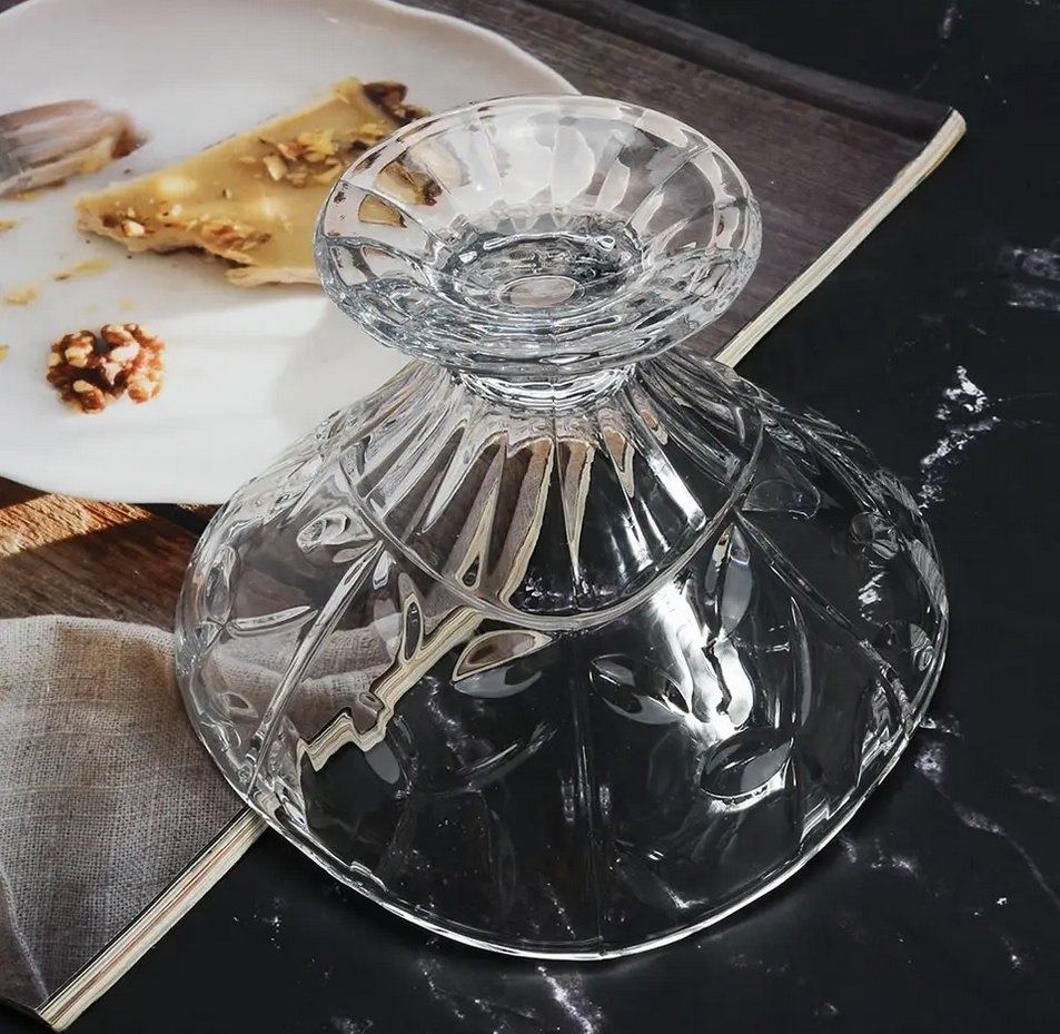 Превърнете всяко сервиране на десерт в специално изживяване с нашата стъклена купичка за сладолед със столче. Създадена да впечатлява, тази купичка е идеалният избор за всеки, който обича да добавя нотка на изтънченост към своето хранене. Независимо дали сервирате сладолед, бонбони или свежи плодове, тази купичка ще направи всеки момент незабравим.