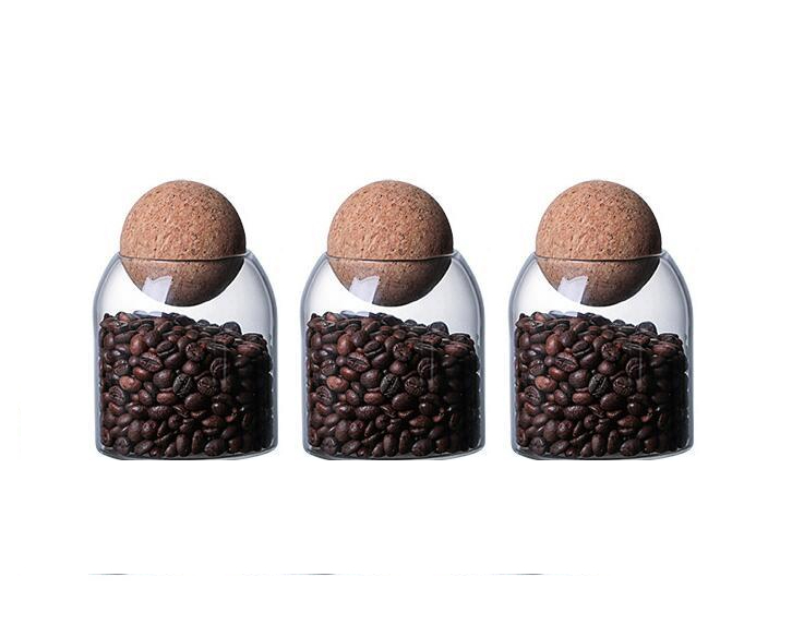 Стъклен буркан с коркова тапа-топка 500 мл. - (Цена за 3 бр!)