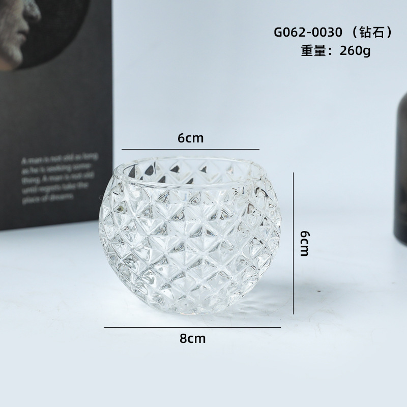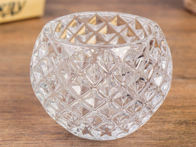 Стъклен свещник за чайни свещи "Ромбове" - Цена за 6 бр.