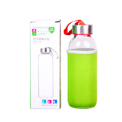 Стъклена бутилка с еднотонен неопренов калъф 300 мл. - 6 бр.