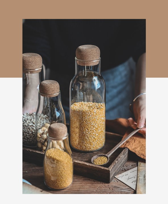 С този продукт ще можете да съхранявате вашите любими подправки и насипни продукти по удобен и сигурен начин. Благодарение на корковия тап, съдържанието ще бъде запазено свежо и без загуба на аромата.