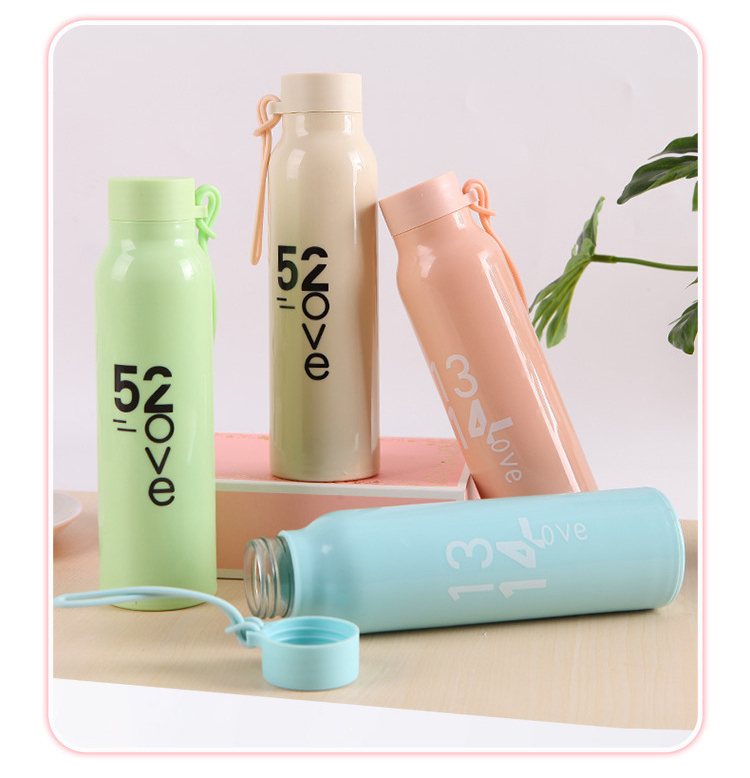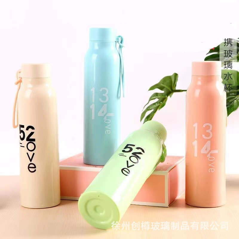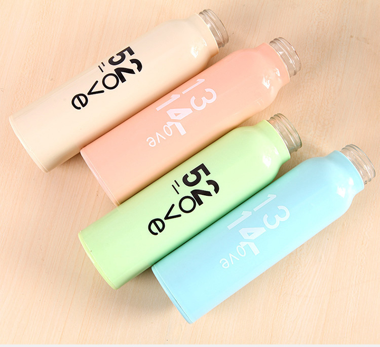 Стъклена бутилка с пластмасово покритие 400 мл. Love - Синя