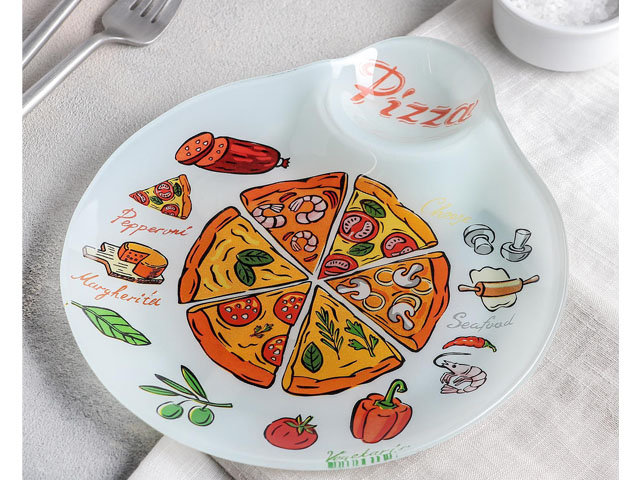 Чинията е изработена от топлоустойчиво стъкло с цветен принт.