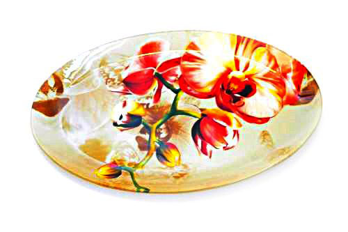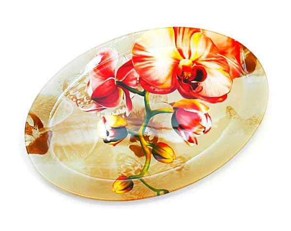 Платото е изработено от стъкло в овална форма с принт на Червена Орхидея.