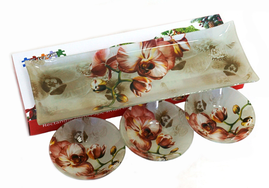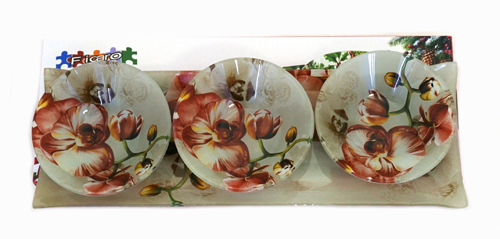 Стъклено плато с три купички "Червена орхидея"