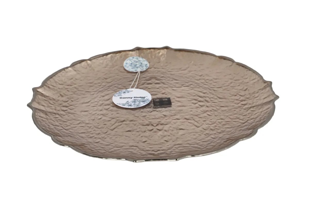 Стъклено плато за сервиране с вълнообразен ръб 23 см. в златист цвят.