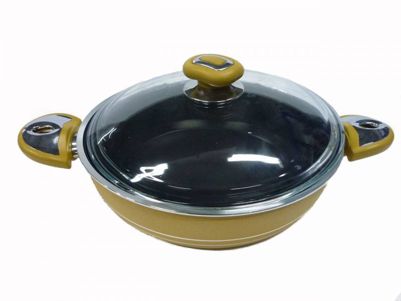 Тенджера,произведена от 99.5 чист алуминий и с два слоя PTFE/тефлоново/покритие,което повишава икономията на енергия и осигурява най-долро разпределение на топлината.
