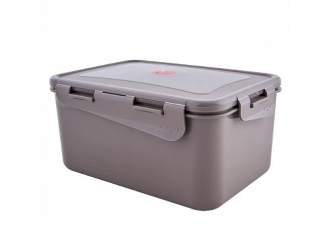 Изработен е от качествен полипропилен. С красив дизайн в цвят какао, с капак със заключване, снабден с 4 скоби, което осигурява херметично затваряне и предотвратява внезапното отваряне. Идеален е за съхранение на насипни хранителни продукти, ястия, офис консумативи, малки домакински аксесоари, инструменти за шиене, детски играчки и др. Незаменим е за използване не само за битови нужди, но и за пикници, разходки и пътувания.
