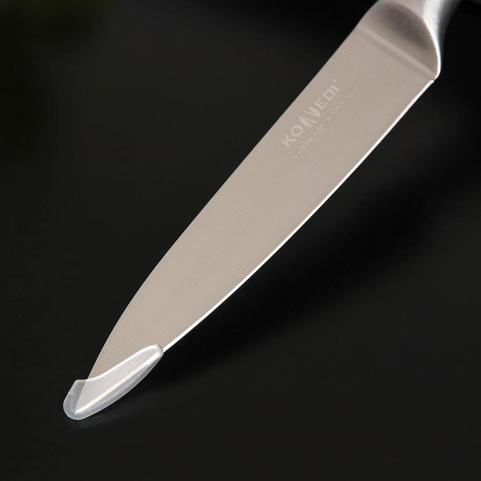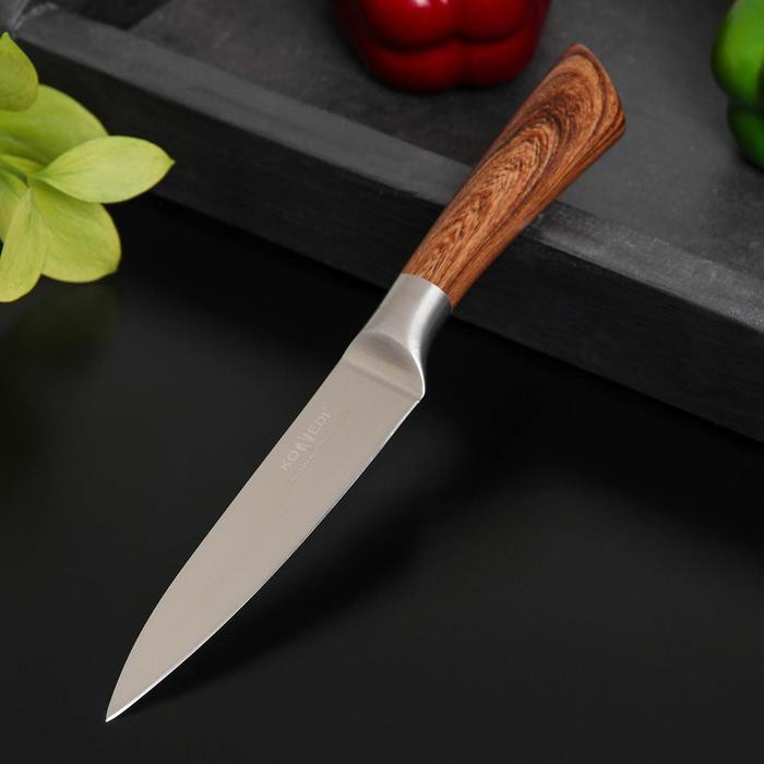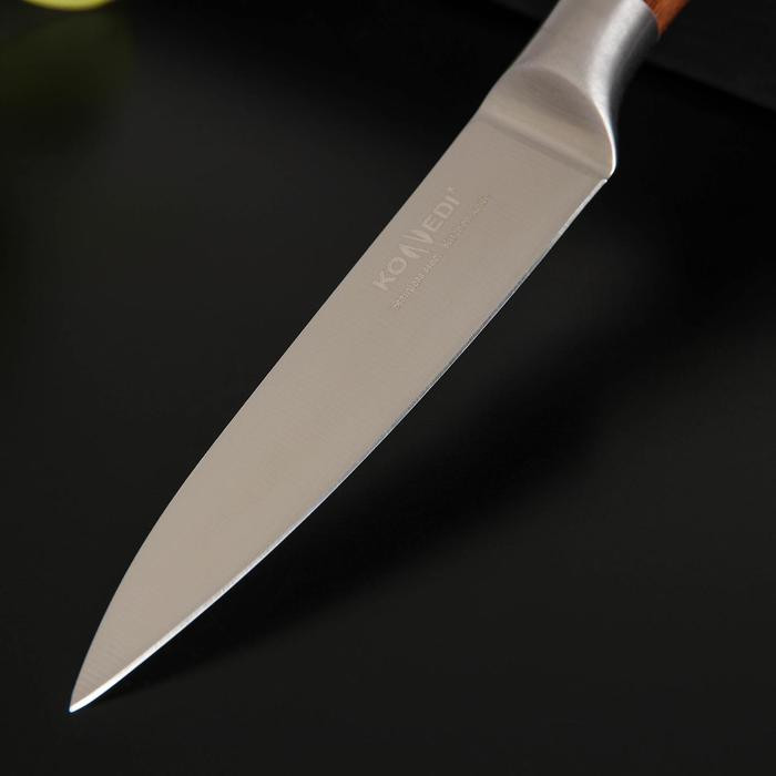 Универсален кухненски нож "FOREST" е идеалният помощник за всяка кухня. Изработен от висококачествена неръждаема стомана, този нож е изключително здрав и устойчив на корозия. С дължина на острието от 12,5 см, той е подходящ за различни видове рязане и нарязване.