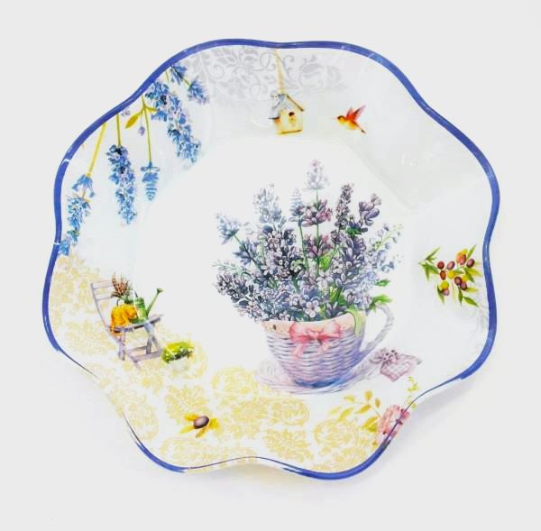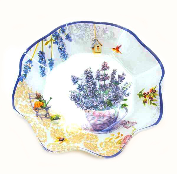 Купата е изработена от стъкло с цветен принт на Лавандула.