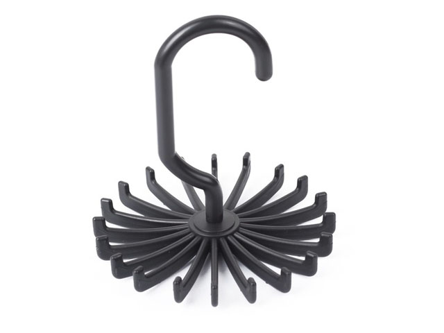 Въртящата се закачалка е практичен органайзер за колани, вратовръзки и шалове, който улеснява подредбата и достъпа до аксесоарите ви. Подходяща е за всеки, който иска да съхранява вещите си организирано и стилно, създавайки уютна и подредена атмосфера в гардероба или стаята.