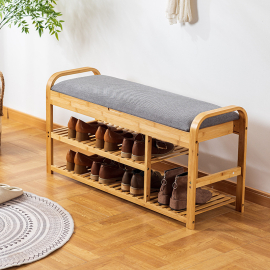 Бамбукова пейка за обувки с 3 нива и възглавница – модерен органайзер